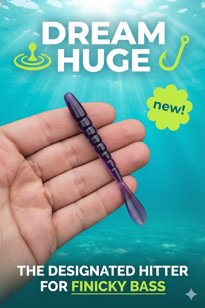 This little 3.25" bait packs a lot of punch for its tiny frame when it comes to large bass. Developed as a drop shot bait because of its horizontal tracking, this mighty soft plastic has become a fish slayer as a trailer for both finesse jigs as well as bladed jigs. You can rely on this bait to put fish in the boat when times get tough that is why we named it the DH.